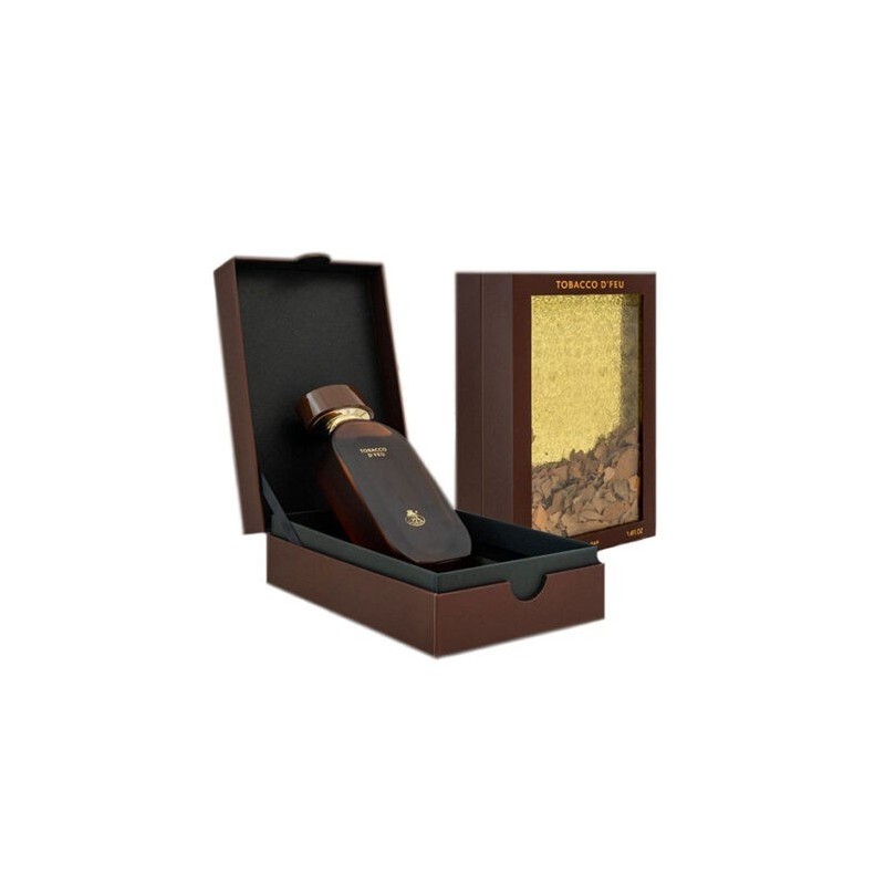 Fragrance World, Tobacco D`Feu, apa de parfum, unisex, 100 ml, inspirat din Byredo Tobacco MandarineParfum proaspăt, picant, lemnos Pentru femei și bărbați eleganți Descoperiți luxul olfactiv care evocă o combinație de intrigi și contraste ce va stârni atenția tuturor celor din jur. Tobacco d`Feu se distinge printr-o aromă inconfundabilă, cu ajutorul căreia veți atrage exact atenția pe care v-o doriți, fiind o combinație modernă în care eleganța se împletește cu tradiționalul.Notele de varf sunt chimion, mandarina si coriandru; Notele de mijloc sunt tutun, pielarie si labdanum; Notele de baza sunt olibanum, lemn de santal si Lemn de Agar(Oud).